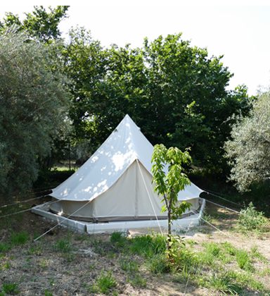 - En tiendas de Glamping: de 5 metros cuadrados con las mismas camas que las habitaciones y una pequeña terraza. El suelo está cubierto por alfombras de fibra de coco. La capacidad de estas son para 3 camas individuales. Tienen luces LED en el interior.